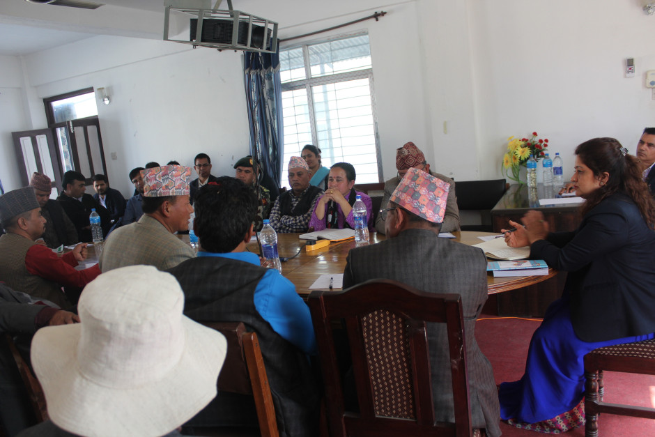 मिति २०७६ फागुन २८ गते जिल्ला विपद् व्यवस्थापन समिति रामेछापको बैठक बस्दैैको अवस्था