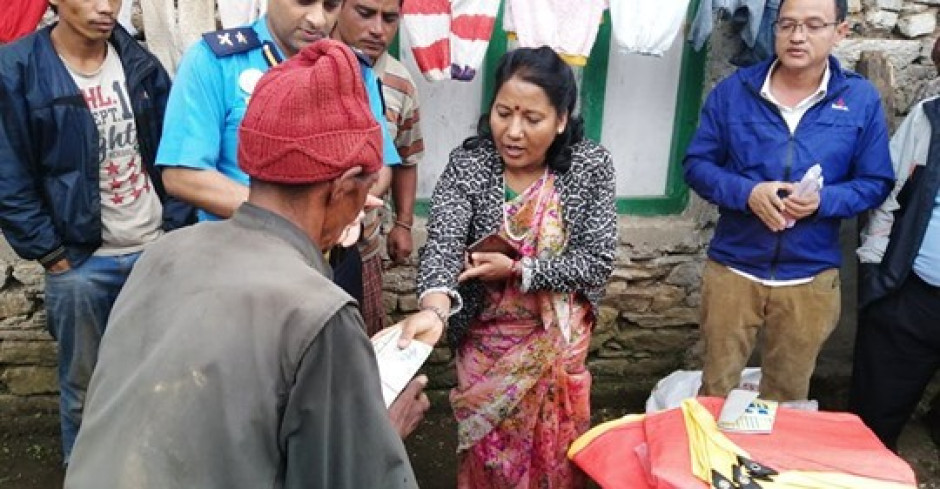 विपद्बाट मृतक भएका पीडित परिवारको घरमै पुगी राहत वितरण