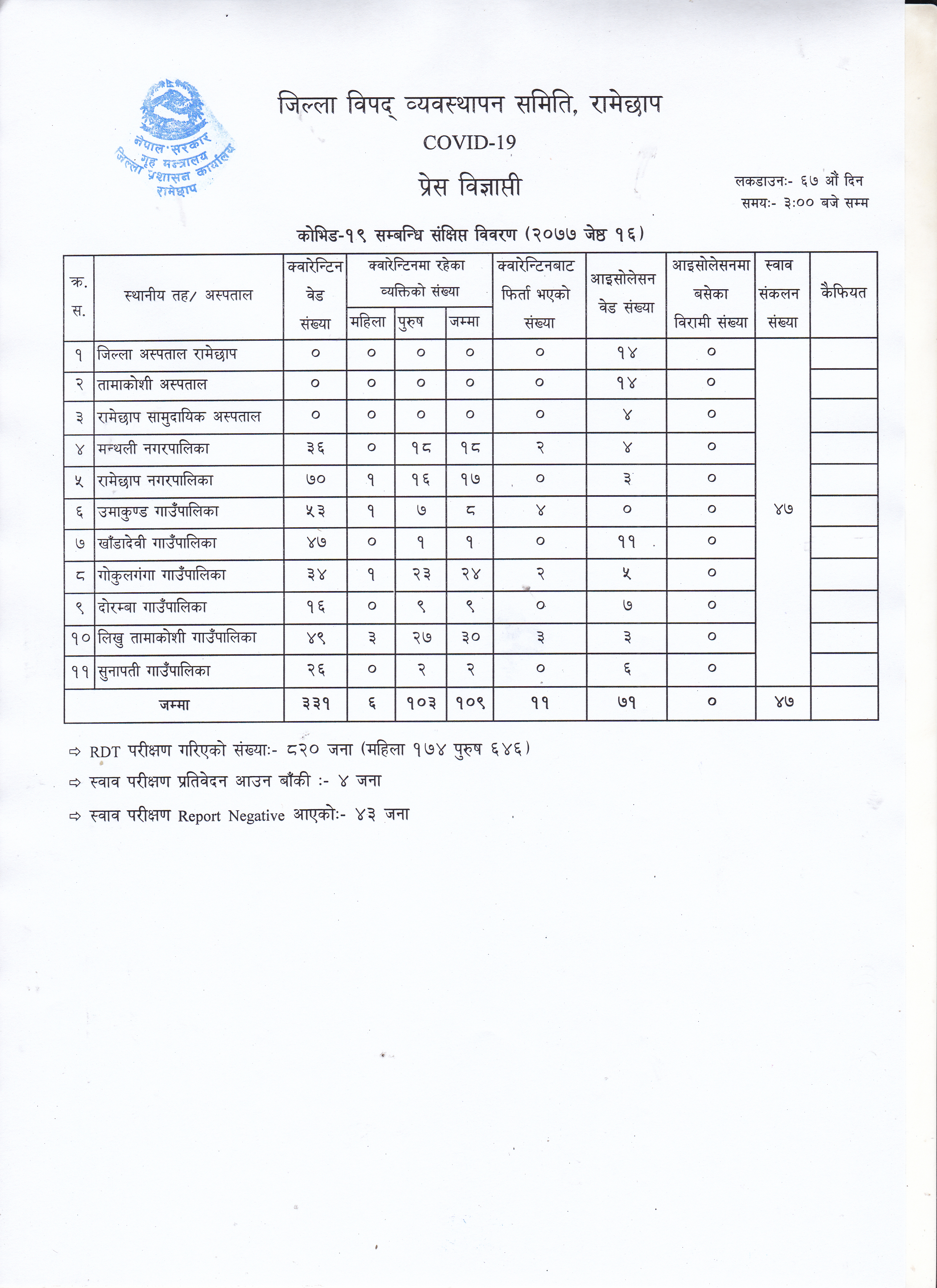 प्रेस विज्ञाप्ति (जेष्ठ १६, २०७७)