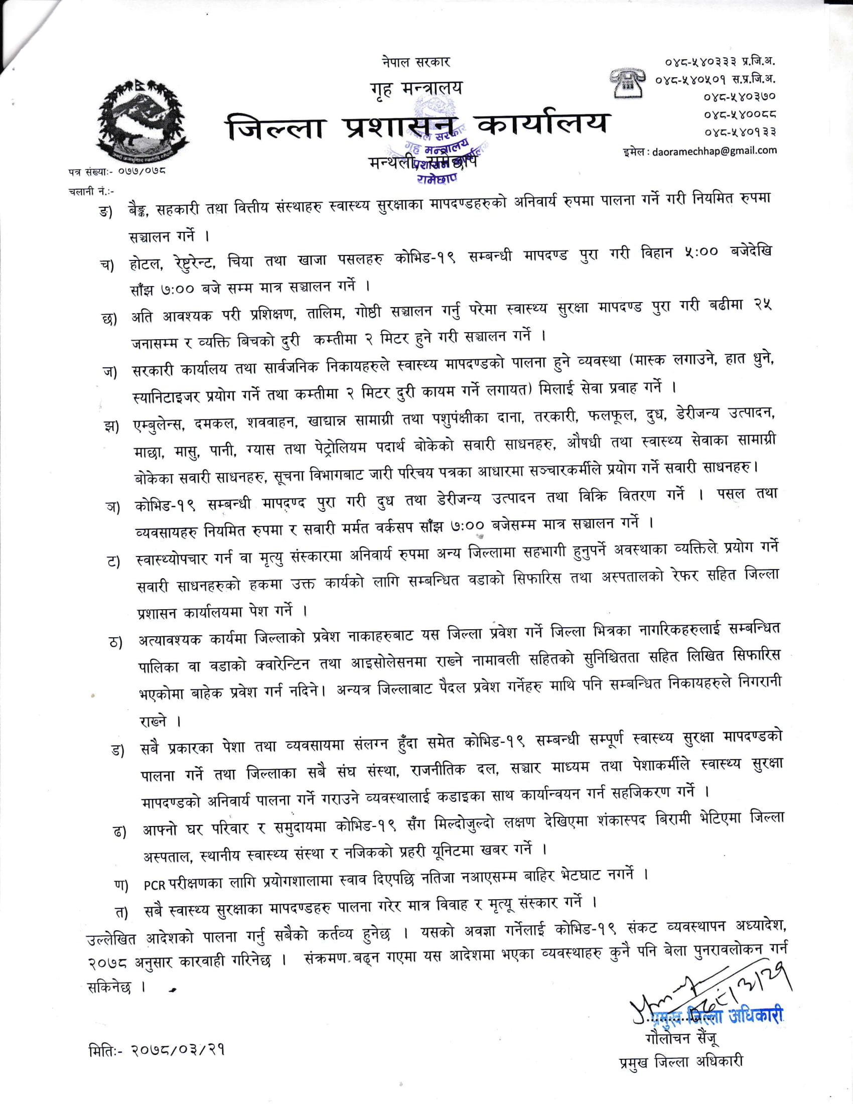 जिल्ला प्रशासन कार्यालय रामेछापबाट जारी निषेधाज्ञा (२०७८/०३/३०)