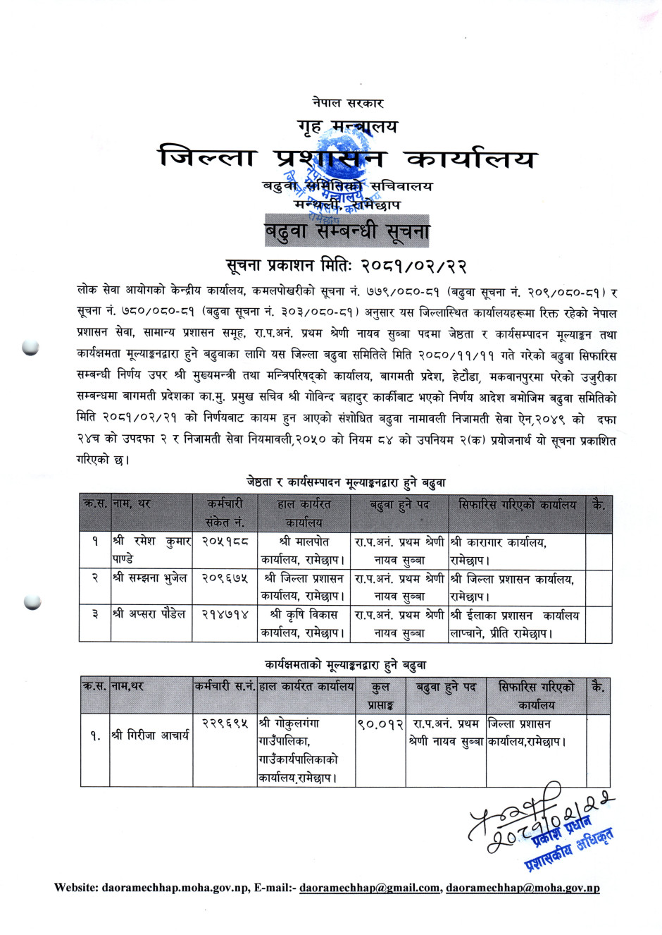 प्रमुख जिल्ला अधिकारीहरुको विवरण (हाल सम्म)