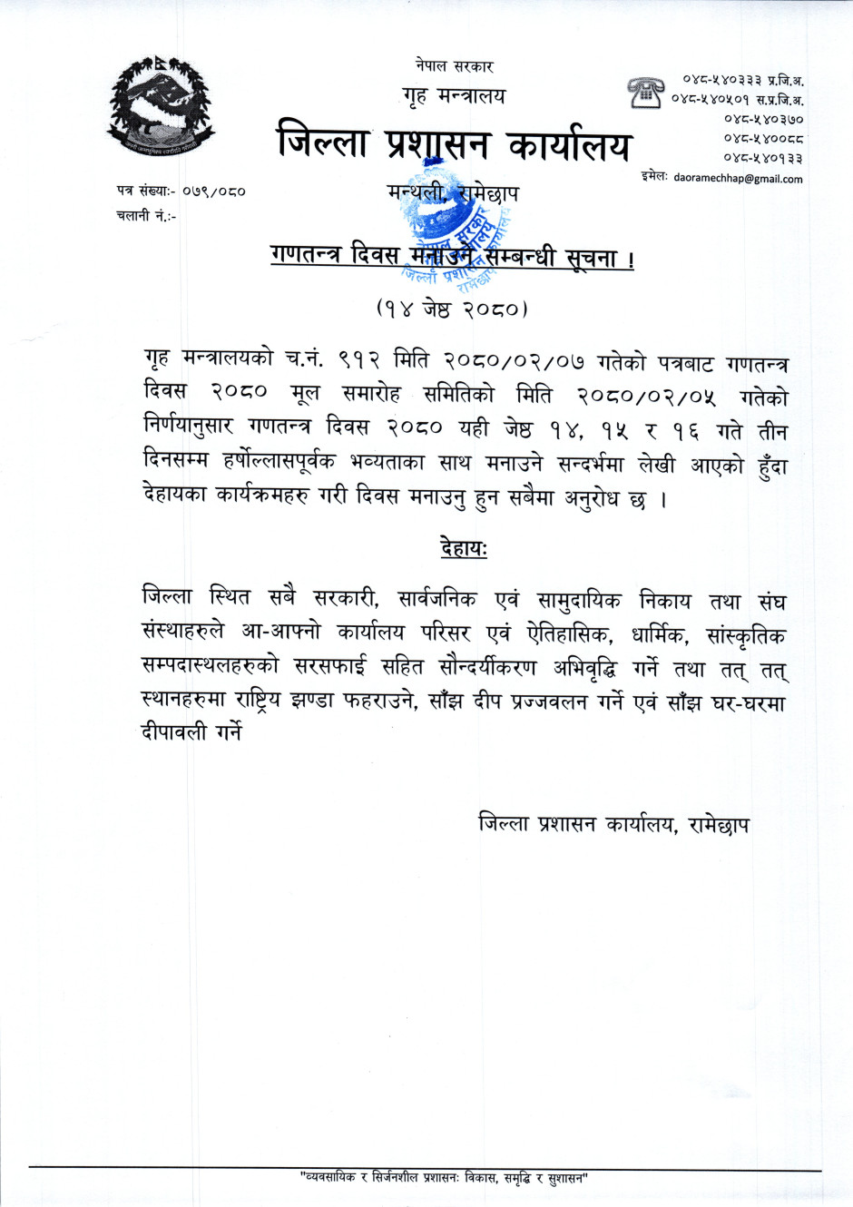 गणतन्त्र दिवस मनाउने सम्बन्धी सूचना !