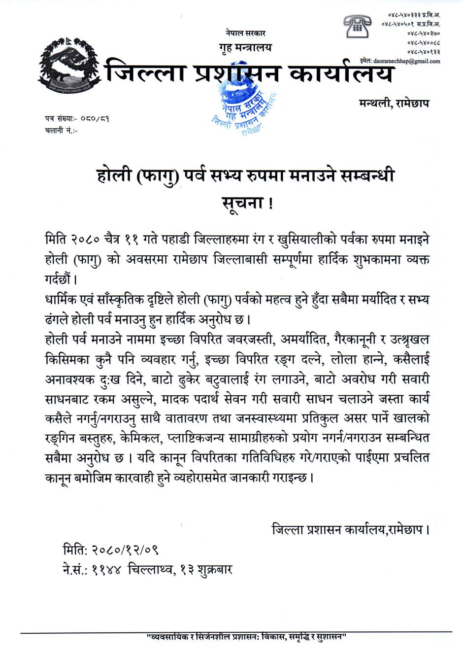 होली (फागु) पर्व सभ्य रुपमा मनाउने सम्बन्धी सूचना !