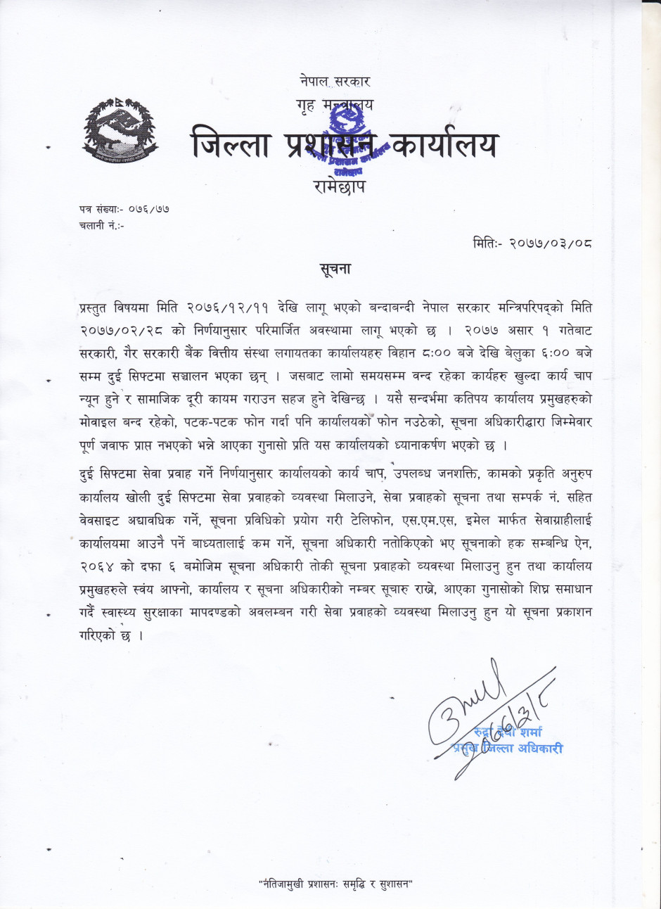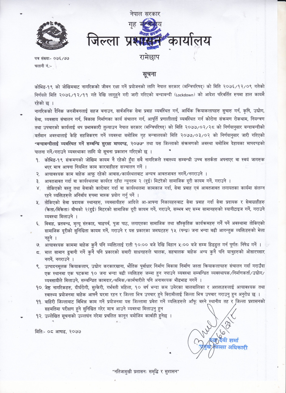 जिल्ला प्रशासन कार्यालय रामेछापको सूचना (०८ असार, २०७७)
