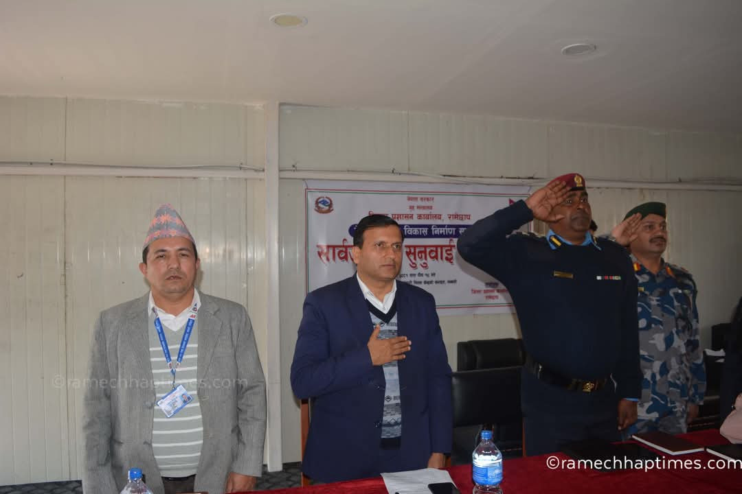 जिल्ला प्रशासन कार्यालयको आयोजना तथा जिल्लास्थित सबै सरकारी कार्यालयहरुको सहभागीतामा २०८१/०९/१९ गते शुक्रबार कर्मचारी मिलन केन्द्र रामेछापको सहभाहलमा सम्पन्‍न सेवा प्रवाह र विकास निर्माण सम्बन्धी विषयक सार्वजनिक सुनुवाइ कार्यक्रम। @ 2081/09/19 शुक्रबार