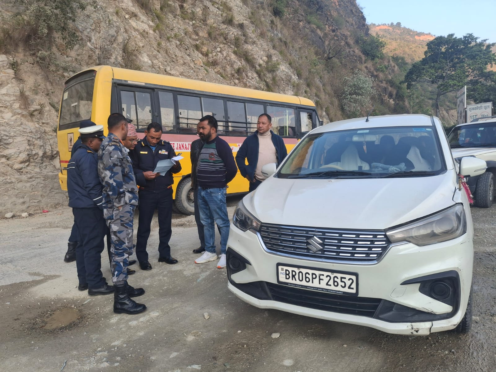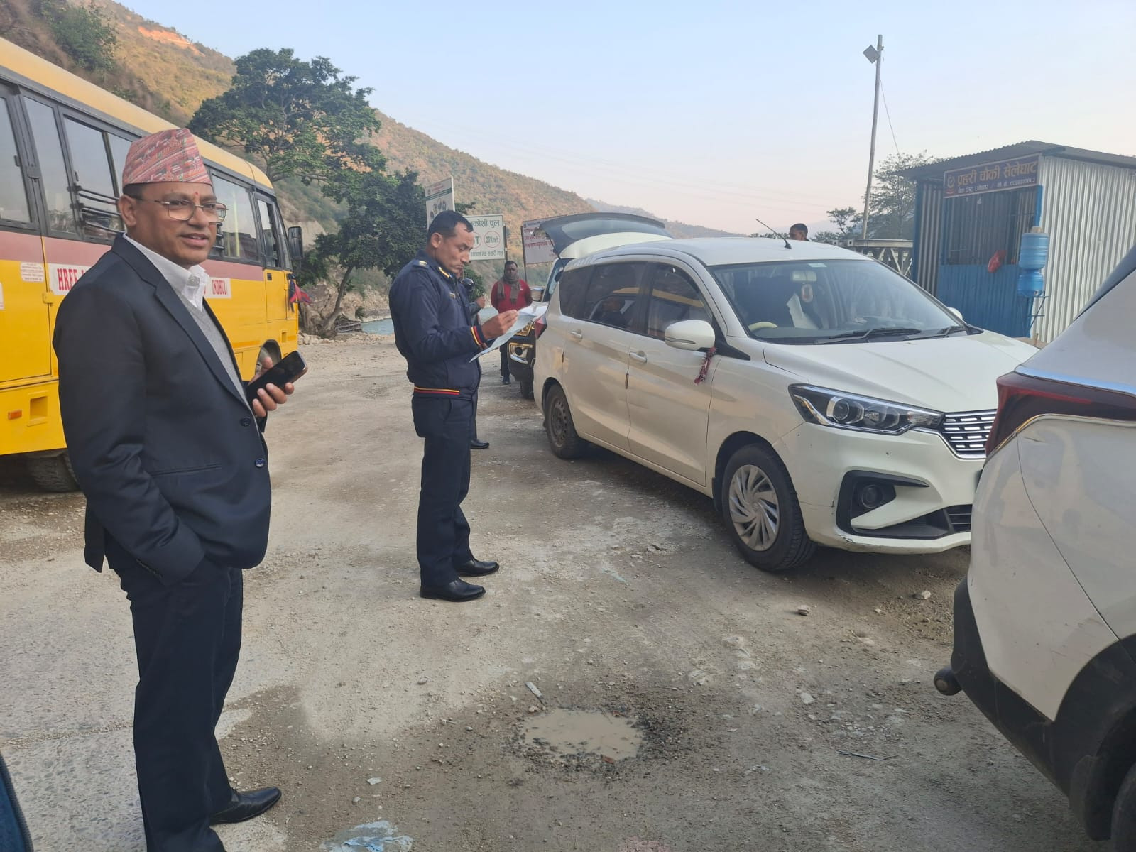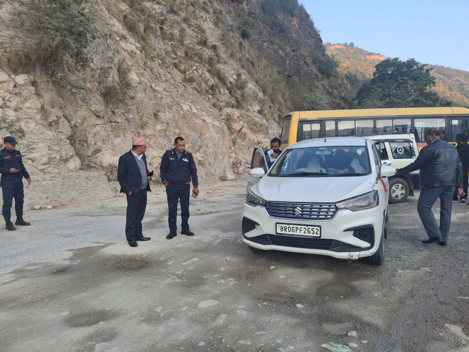 लागू औषध नियन्त्रणका लागि प्रजिअ श्याम कृष्ण थापासहित सीमा नाका सेलेघाटमा अनुगमन गर्दै जिल्ला सुरक्षा समितिका पदाधिकारीहरु २०८२-०९-१६