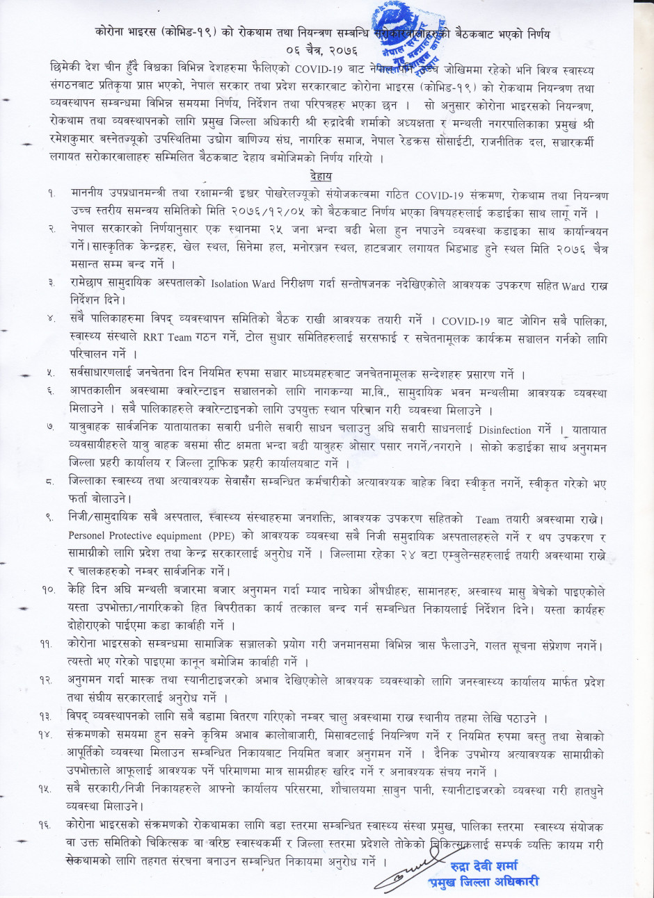 नोवेल कोरोना भाइरसको रोकथाम, नियन्त्रण तथा व्यवस्थापन सम्बन्धि अत्यन्त जरुरी सूचना