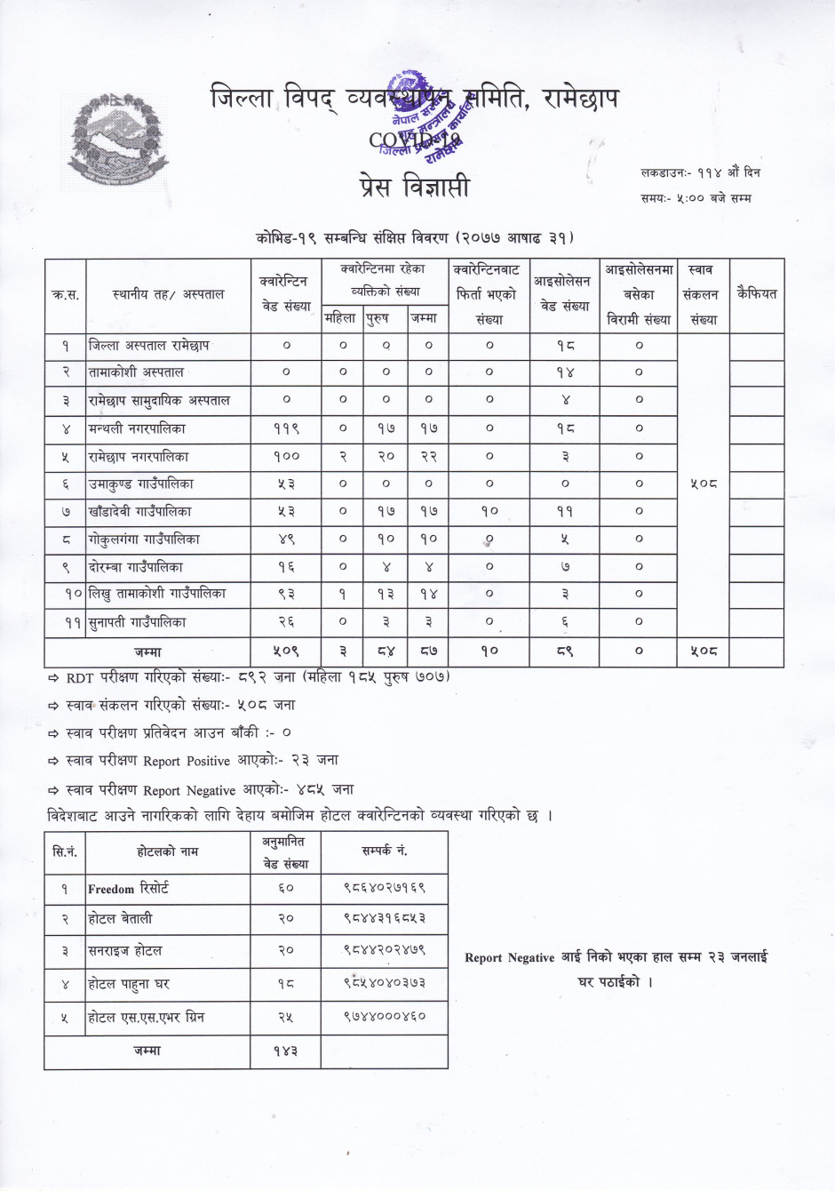 प्रेस विज्ञाप्ति (आषाढ ३१, २०७७)