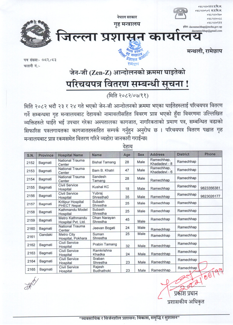 परिचयपत्र वितरण सम्बन्धी सूचना ! २०८२-०७-११