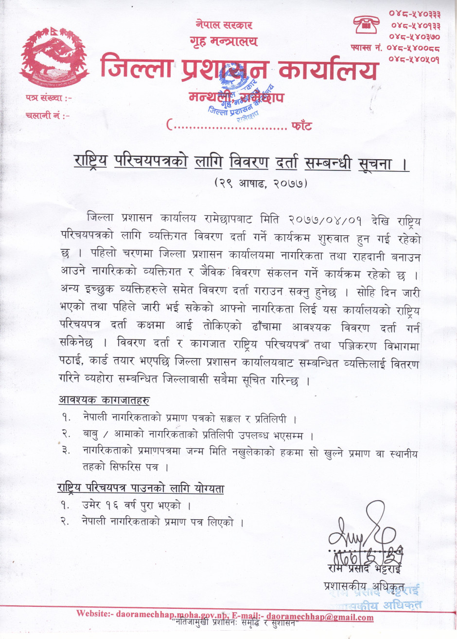 राष्ट्रिय परिचयपत्रको लागि विवरण दर्ता सम्बन्धि सूचना