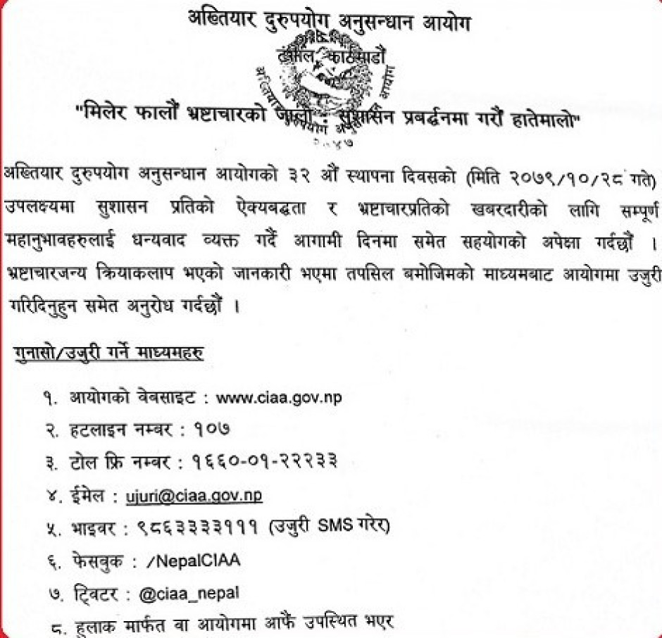 निर्वाचन प्रहरी भर्ना सम्बन्धी एकीकृत सूचना 2082-09-24
