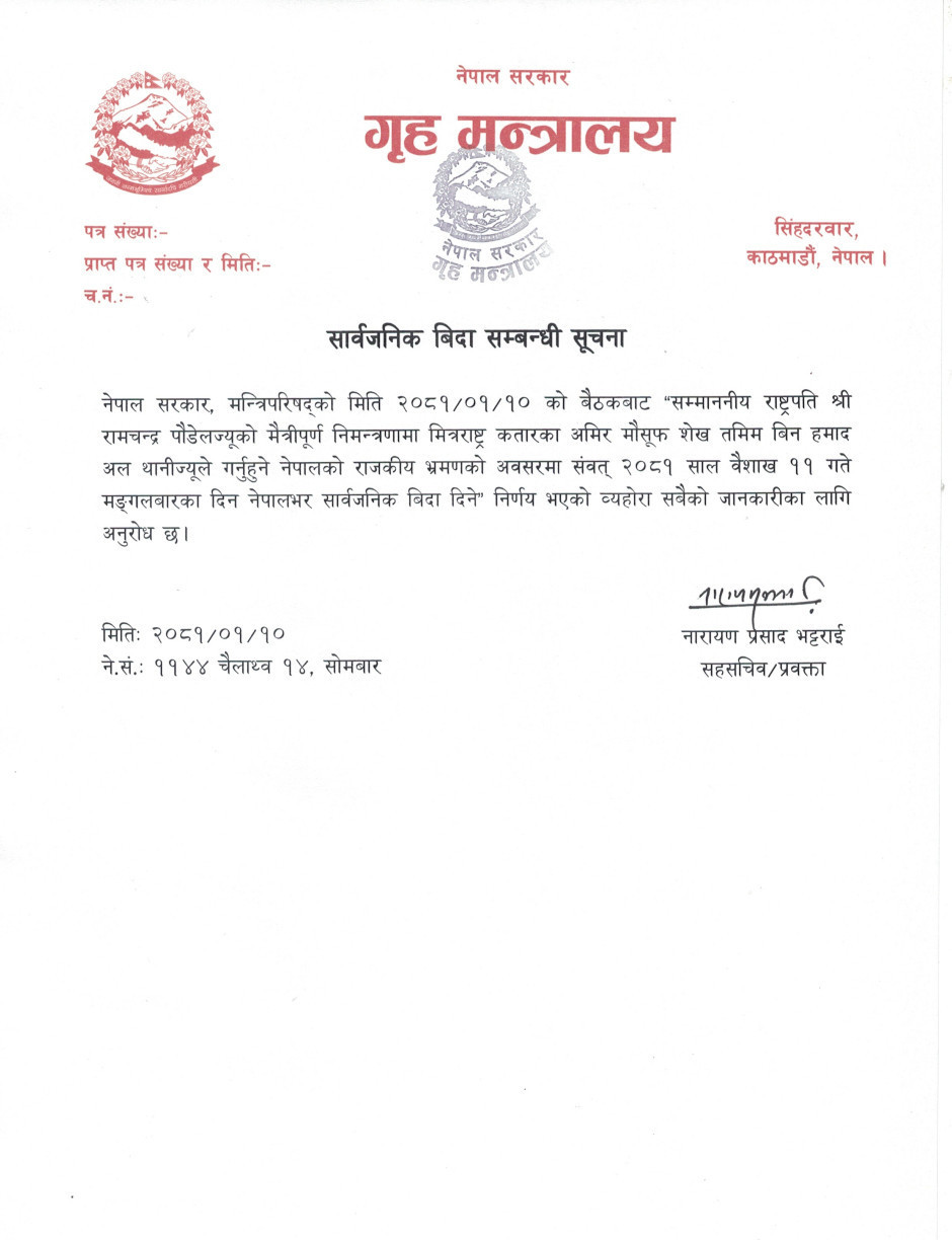 सतर्कता अपनाउने सम्बन्धी सूचना ! २०८२/०७/१३